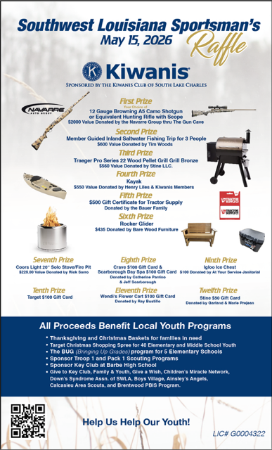 South Lake Charles Kiwanis 2026 Sportsman’s Raffle